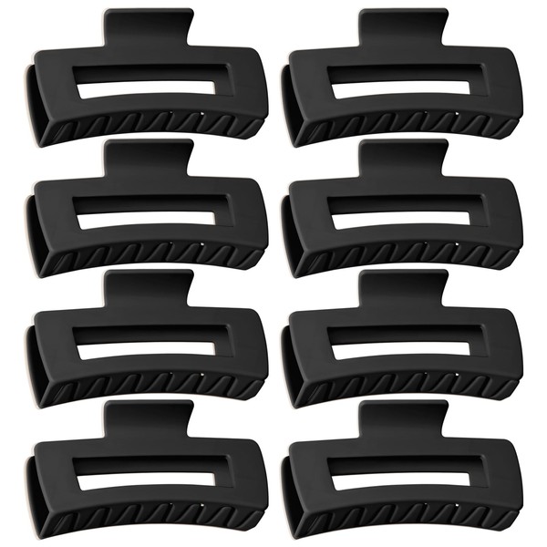 TOCESS Hair Claw Clips for Women - 8PK Large Neutral Matte Square Jumbo Hair Clips for Thick, Thin, Long, Short, Curly Hair Girls, Big Jaw Clip Set for Daily Use(Midnight Black)