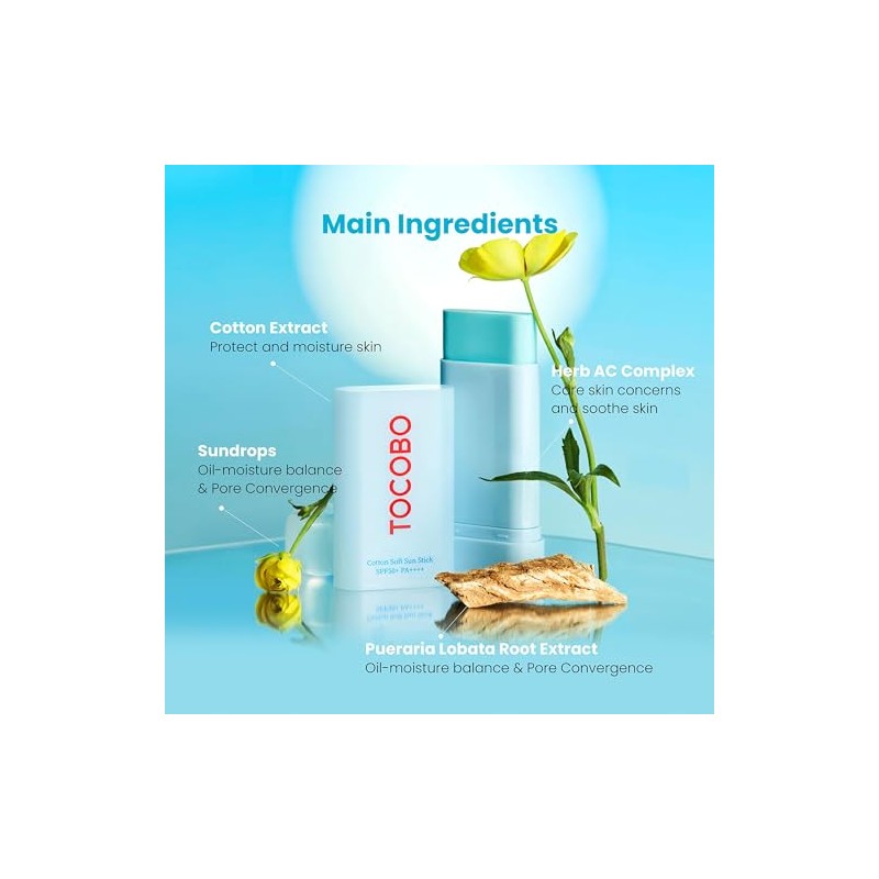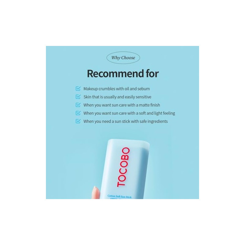 TOCOBO - TOCOBO [TOCOBO] Barra solar suave de algodón SPF50+ PA+++ 0.67 onzas / 0.67 oz | Ingredientes naturales, antisebo, sensación mate suave | EWG Green + sin PEG, barra solar vegana coreana para la cara