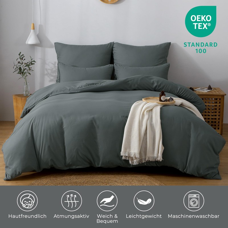 - Box contents: you will receive a bed linen 200 x 200 cm, 3-piece anthracite, consisting of 1 duvet cover 135 x 200 cm and 2 pillowcases 80 x 80 cm (filling material not included). This bedding set is suitable for various duvets and pillows and offers complete comfort. The bedding is Oeko-Tex certified, hypoallergenic and free from harmful substances, making it suitable for all people.