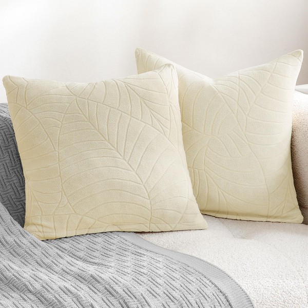 TOCOMOA Set of 2 Velvet Cushion Covers, 40 x 40 cm, Sofa Cushion, Decorative Cushion Covers, Beige Decorative Cushion Cover, Leaf Pattern, Decorative Cushion, Splashproof, Couch Cushion for Sofa