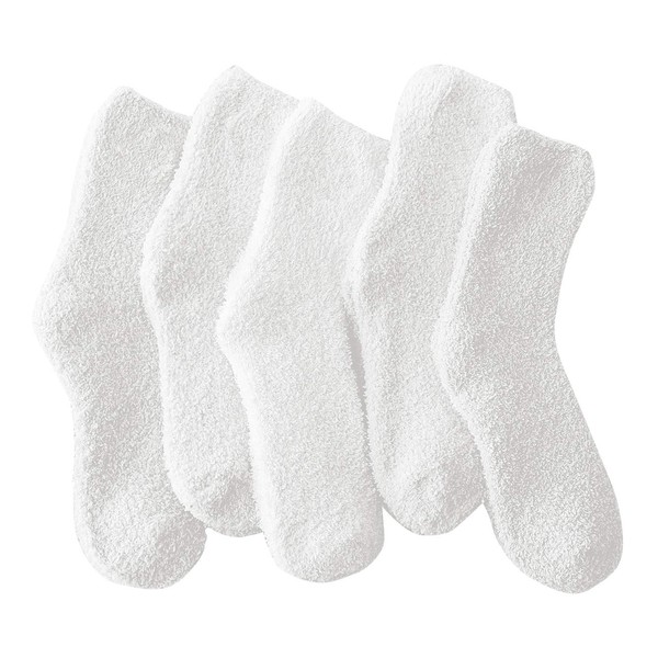 TOCONFFON Women's Cozy Fluffy Fuzzy Socks Plush Home Slipper Socks 5,6,7,8 Pairs(5 White)