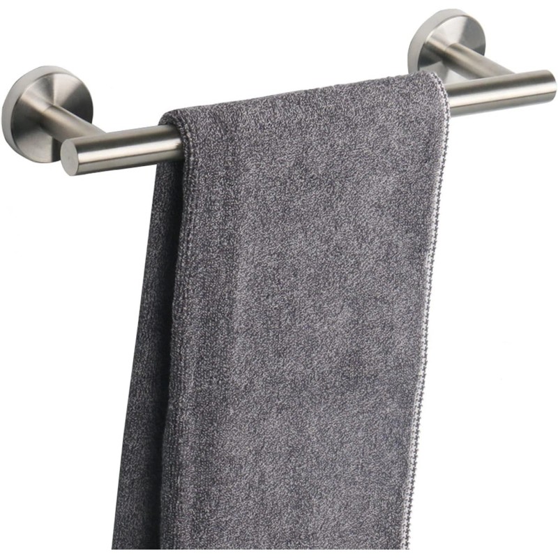 This sleek towel bar features a timeless brushed nickel finish and minimalist profile that adds a clean, modern touch to your bathroom, kitchen, or vanity area. Its space-saving design keeps towels accessible while maintaining a tidy look.
