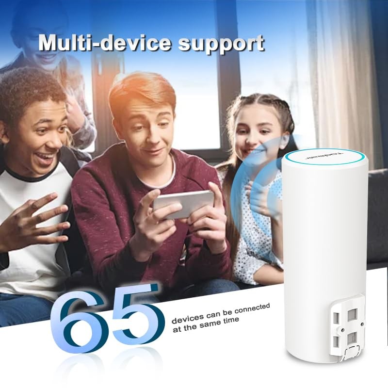 - WiFi coverage radius is up to 255 feet, and can connect up to 65 devices, such as laptops, smartphones, speakers, IP cameras, tablets, IoT devices, etc. Contains enhanced antennas, which can effectively increase antenna gain and improve wireless stability.