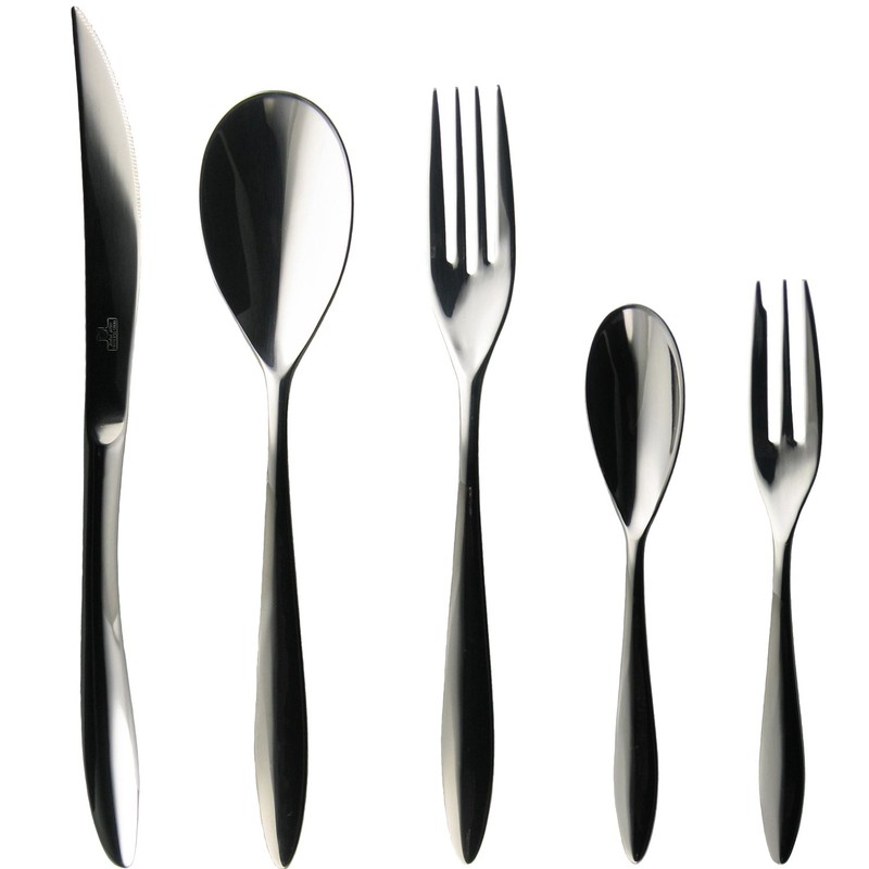 - Set Includes: Dessert Knife, Dessert Spoon, Dessert Fork, Teaspoon, Cake Fork