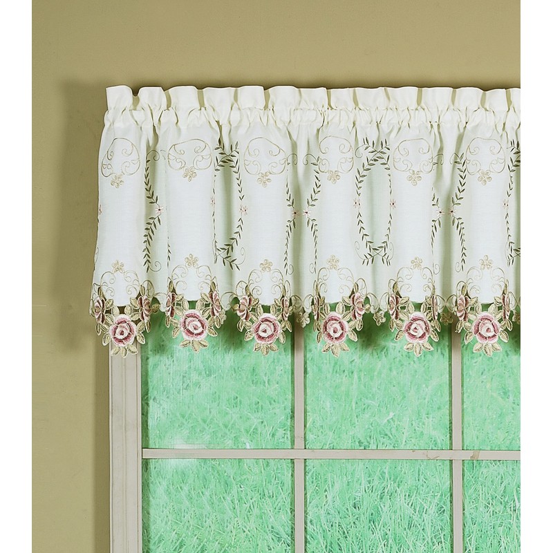 Today's Curtain Verona Reverse Embroidery Tailored Valance, 18", Ecru/Rose
