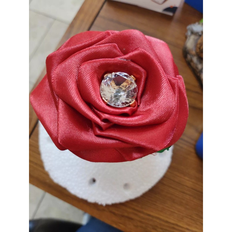 Beautiful handmade flower made with ribbon, black ink, and can come with any color. The last picture is for size reference.