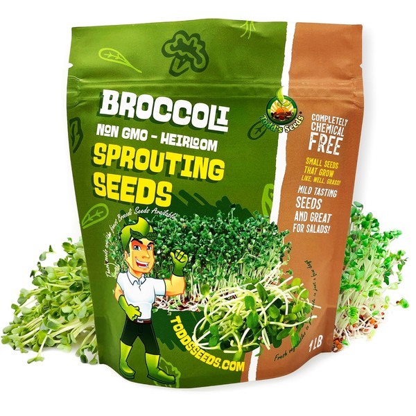 Todd’s Seeds - Calabrese Broccoli Sprouting Seeds, 1 lb - High in Sulforaphane, Non-GMO, Heirloom Variety - Bulk Seeds for Nutrient-Rich Sprouts & Home Gardening (Chemical Free - Better than Organic!)