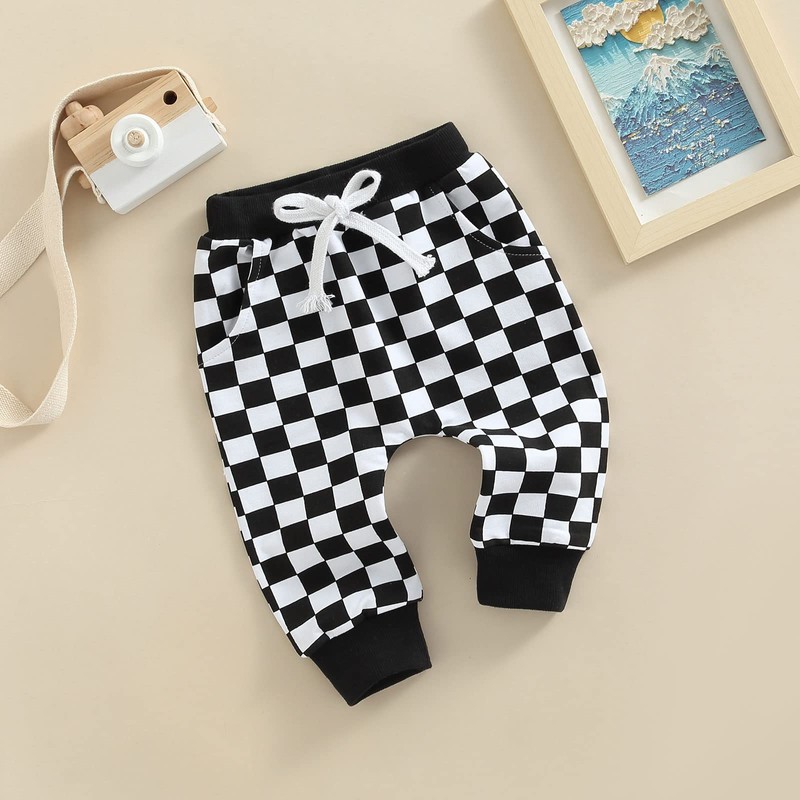 - Design: Baby girl classic plaid printed pants, casual pants for little girls, elastic design, drawstring, black and white plaid, khaki white plaid, gray and white plaid, fashionable boys pants, versatile styles, whether it is with a simple T-shirt, vest , shirt, camisole or all kinds of coats, these plaid casual pants can create a cute and stylish effect, beautiful and handsome baby pants