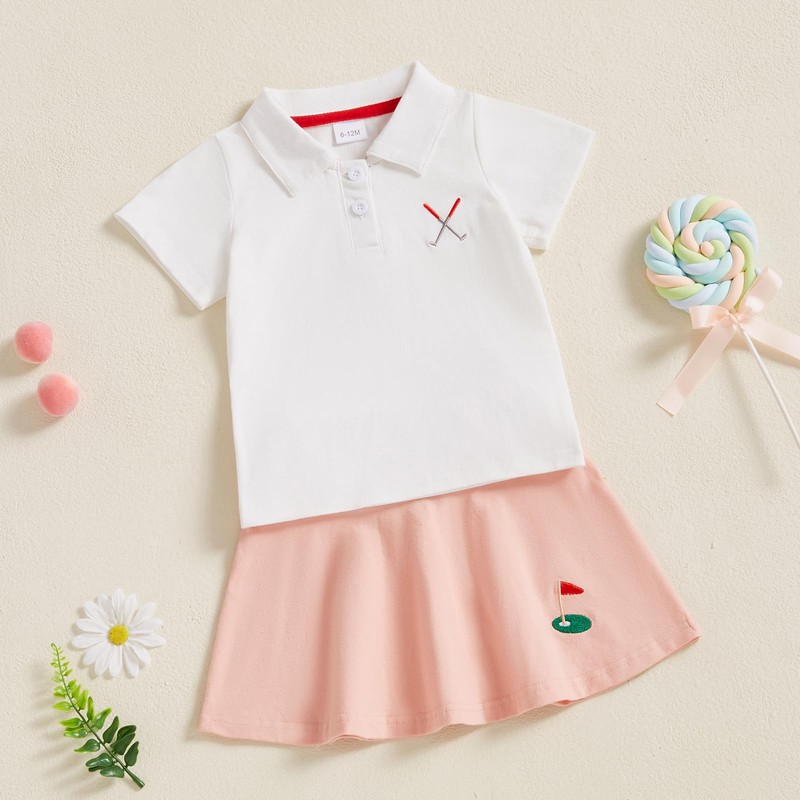 - VERSATILE DESIGN:Baby golftwo-piece toddler girl's outfit can be easily paired with sandals, princess shoes, crossbody bag, straw hat and sunglasses for a stylish look,baby golf outfit for toddler girl,toddler girls skirt dress for sport,toddlers golf shirts 12-18months,toddler golf clothes