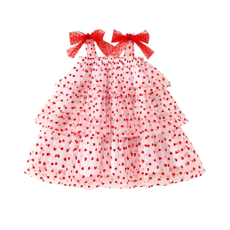 - Dress features 3 layers of tulle , spaghetti strap and an allover white design with red velvet hearts, making it a perfect pick for toddler valentines day outfit girl.
