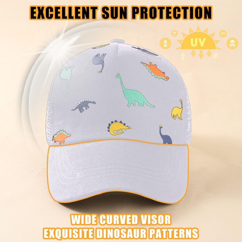Toddler Baseball Hat,Breathable Dinosaur Baby Outdoor Beach Sun Cap,Adjustable Fit Mesh Baseball Hat for Kid Boys Girls (US, Age, 3 Years, 5 Years, Grey)