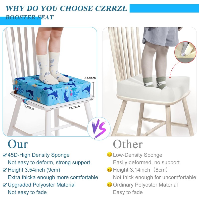 - [Comfortable and Durable Material] Our toddler booster seat is made of high-quality polyester and high-density sponge, ensuring long-lasting comfort and durability. The soft canvas cover is also gentle on your child's skin