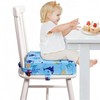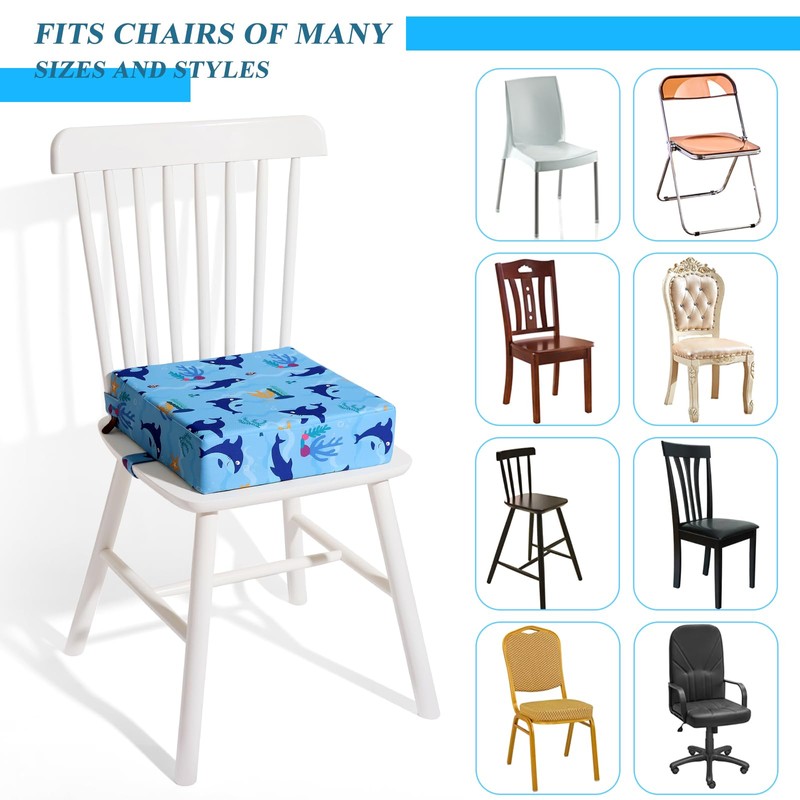 - [Versatile Use] Our kids booster seat for dining table are colorful and have a cute dinosaur and Shark design to enhance your child's enjoyment of mealtime.Portable booster seat can be used at home for eating, drawing, playing, or as a high chair booster seat for going out to restaurants, traveling, and other public areas