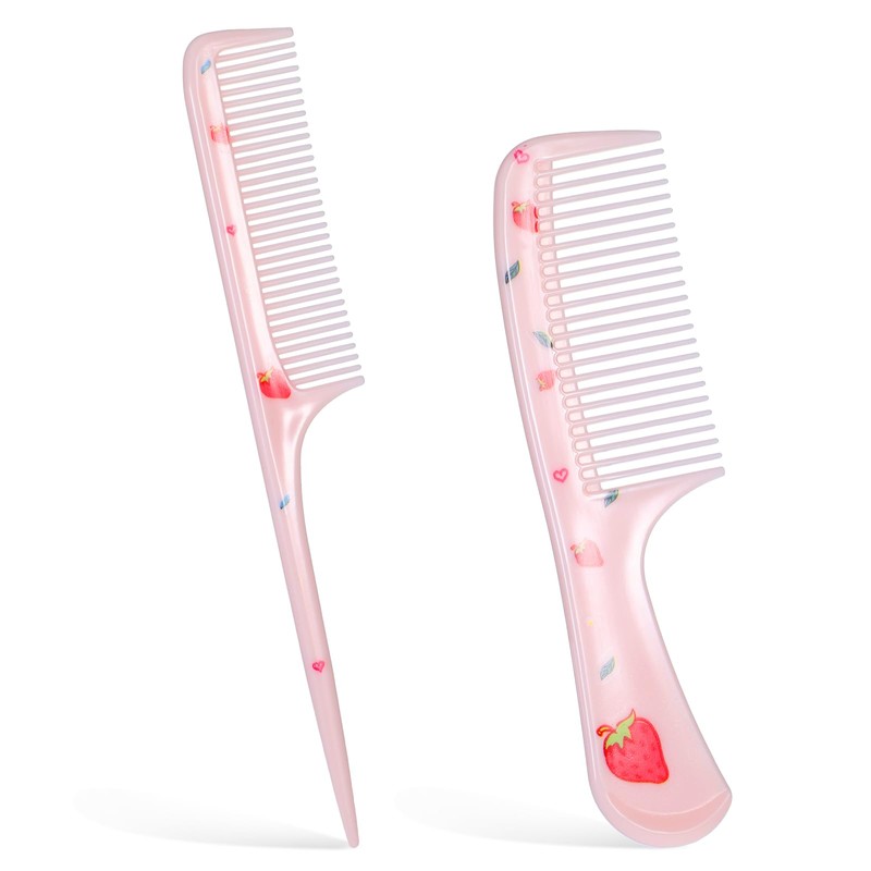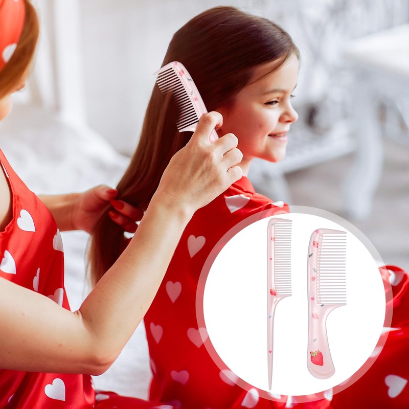 Toddler Comb,2 Pcs Small Cute Hair Comb, Mini Baby Hair Combs Set Fine Tooth Rat Tail Combs for Women Portable Anti-Static Plastic Tools for Girls Curly Straight Long Hairs Wet Dry (Pink Strawberry)