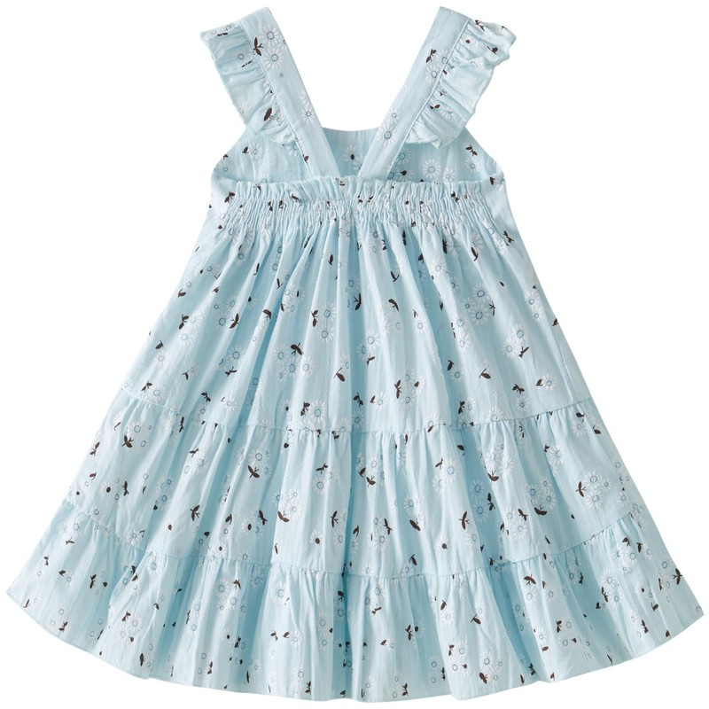 Toddler Dress Flutter Sleeveless Princess Cotton Summer Floral Dresses, Blue Floral, Szie 18-24 Months