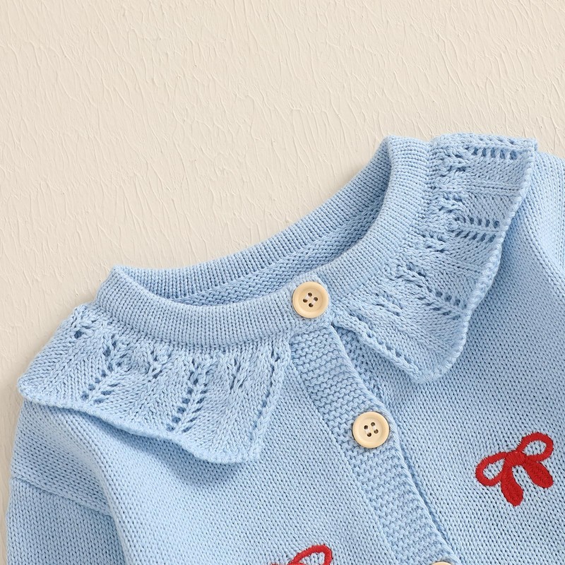 Toddler Girls Fall Knit Cardigans Bow Pattern Button Down Long Sleeve Crew Neck Baby Sweater Jackets (Blue Bow, 3-6 Months)