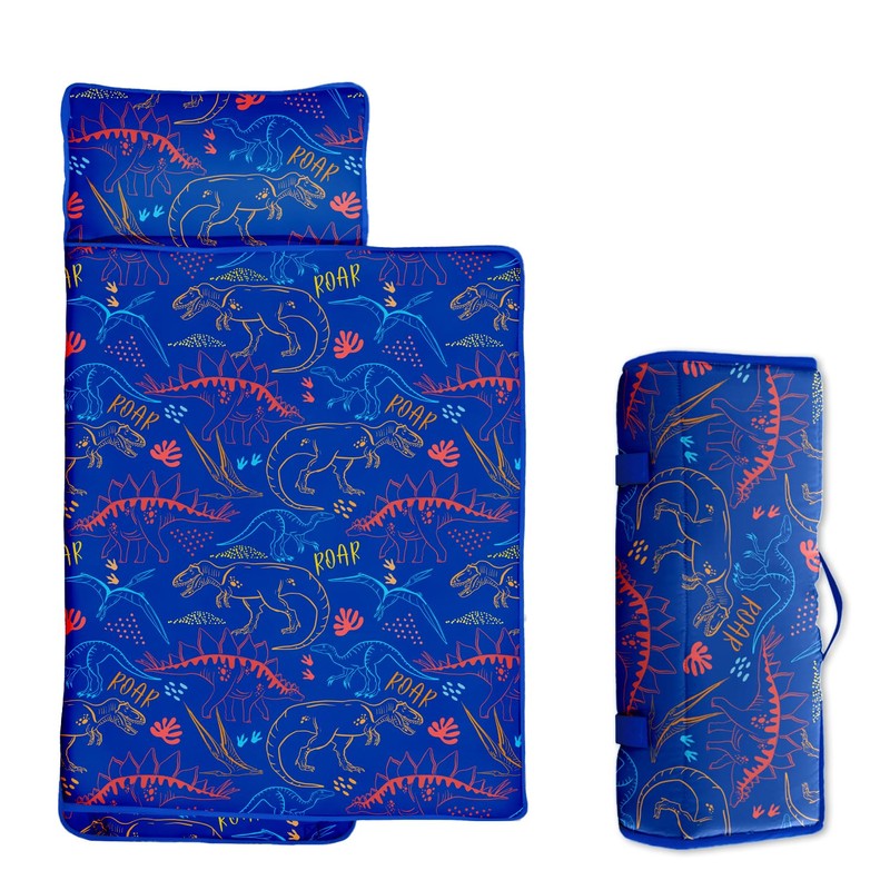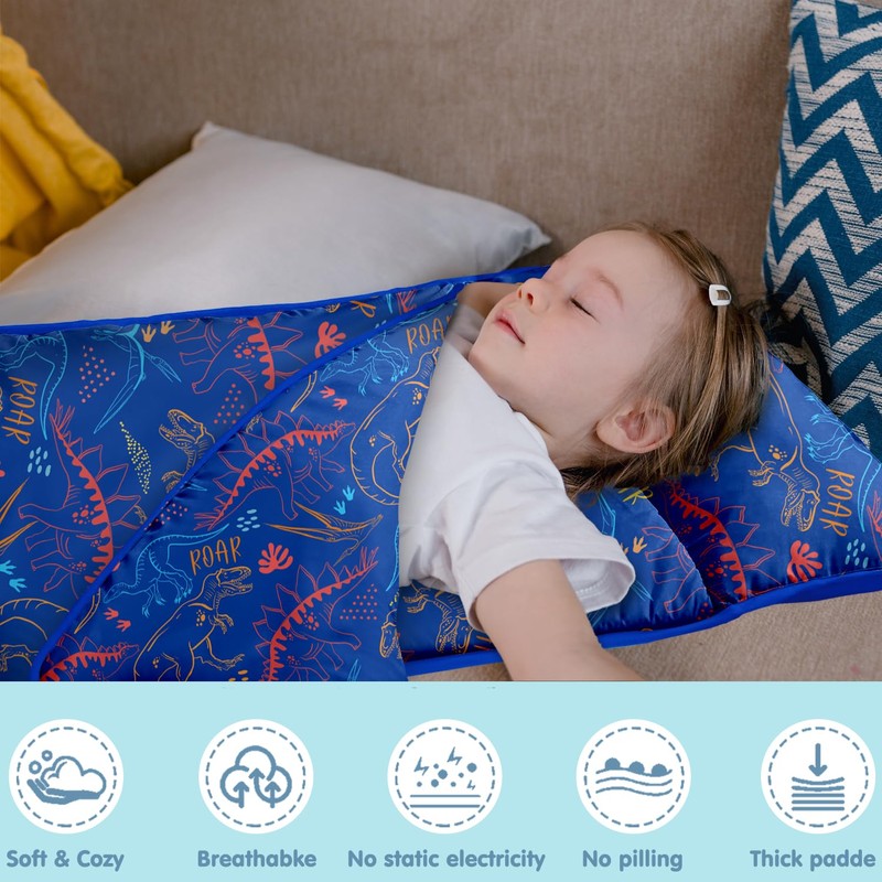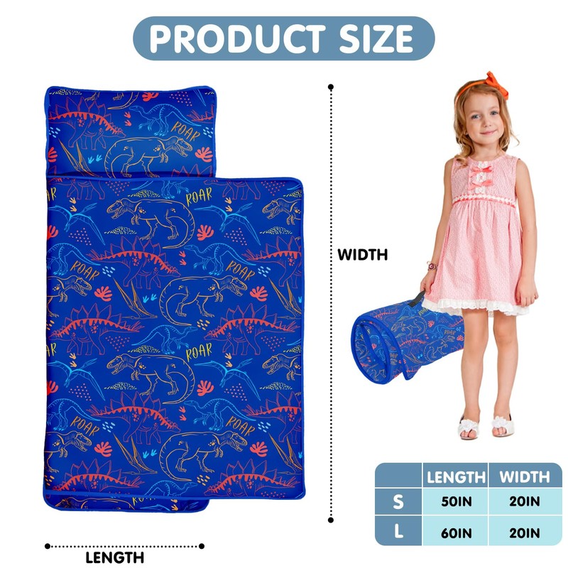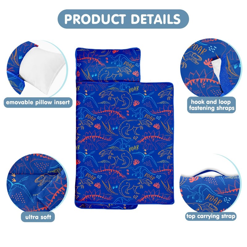Toddler Nap Mat/Removable Pillow -Dinosaur- Carry Handle with Straps Closure,Toddler Nap Mat Extra Large 60 in*20 in Boys Sleeping Mat Nap Mat for Preschool Kindergarten, Sleeping Bag