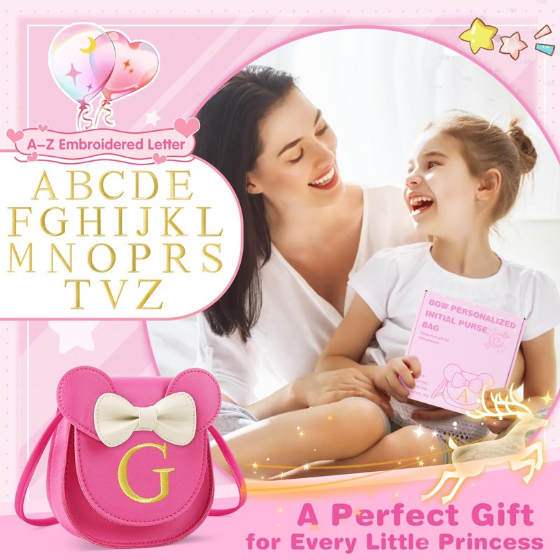 - đăThoughtful Personalized GiftăToddler Purse with cute mouse ears bow is a versatile gift choice, suitable for kids, little girls, and women alike. Customized with initials, giving this glitter letter bag a unique meaning. Beautiful shape and unique design, any girls can't refuse this initial cute purse, the best purse you must have! It's also an ideal gift for Birthday, Children's Day, Thanksgiving, Halloween or Christmas gift.
