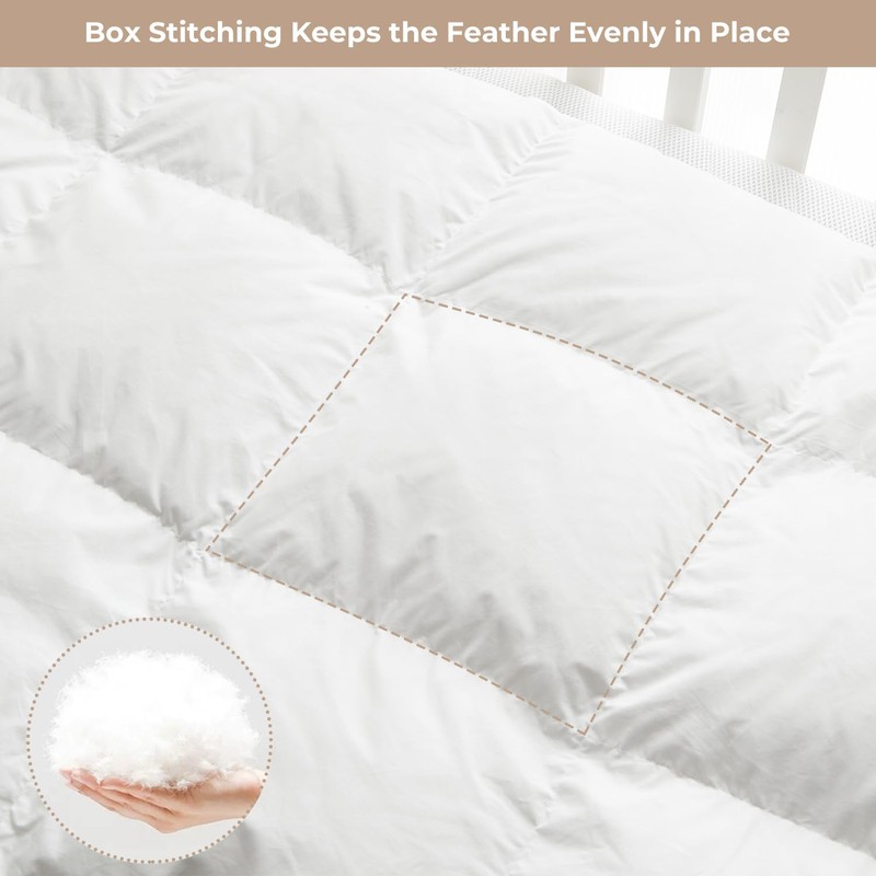 - 3.Advantage:It's easy to carry.Finest materials, 100% goose down and organic cotton cover.Breathable,light weight,warm. Box Stitching to keep fill in place without shifting.For all season.