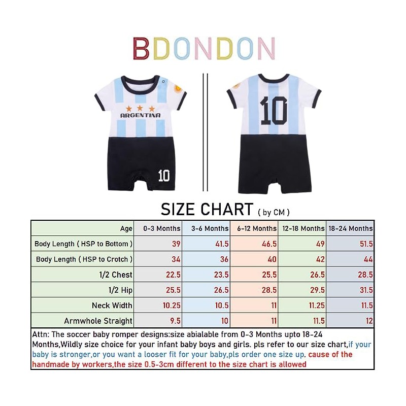 Toddlers Soccer Costume for Baby Boys #10 Argentina Football Baby Shirt Romper for Infant Girls (ATR-Ca,18-24M)