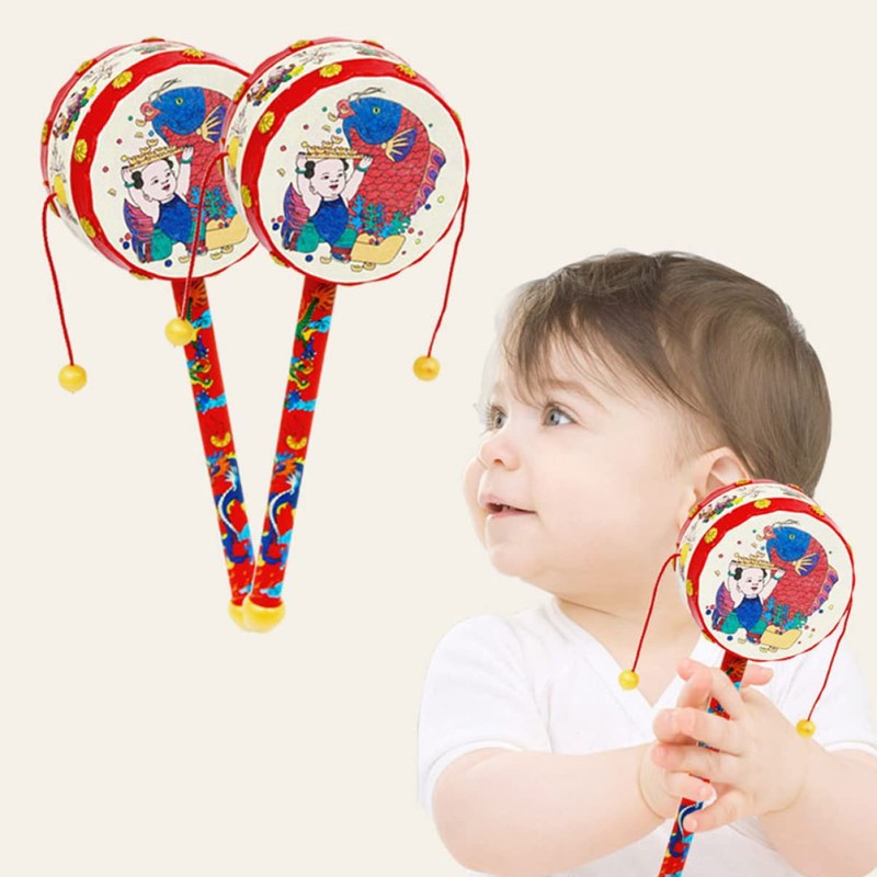 - HAND JINGLE BELLS-- There is a boy pattern with traditional Chinese characteristics on the drum surface, which symbolizes and luck, and brings blessings to the baby