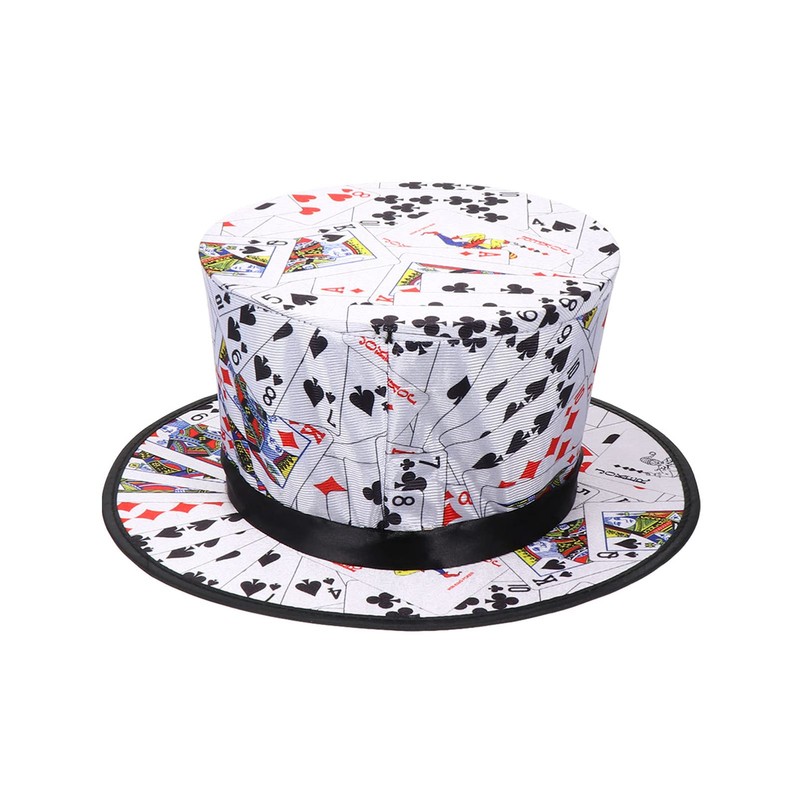 Toddmomy Top Hat Wizard Hat Cap Cloth Playing Card Print Costume Party Hat Marvellous Performance Hat Magic Party Hat Dress Up Party Accessories Colourful
