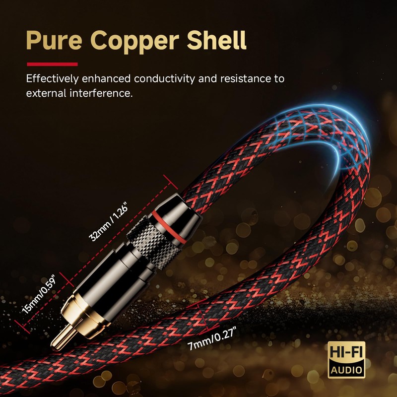 - 24K Gold-plated Connector: RCA Cord features corrosion-resistant 24K gold-plated pure copper plugs for reliable connections and reduced signal loss. And pure copper for enhanced conductivity.