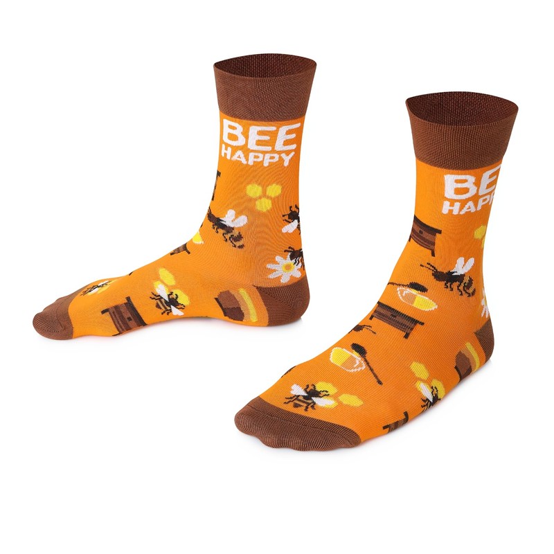 - Funny socks with the inscription: Bee Happy. Busy bees in the hive are an accessory that should not be missing in your wardrobe. Ideal as a gift.
