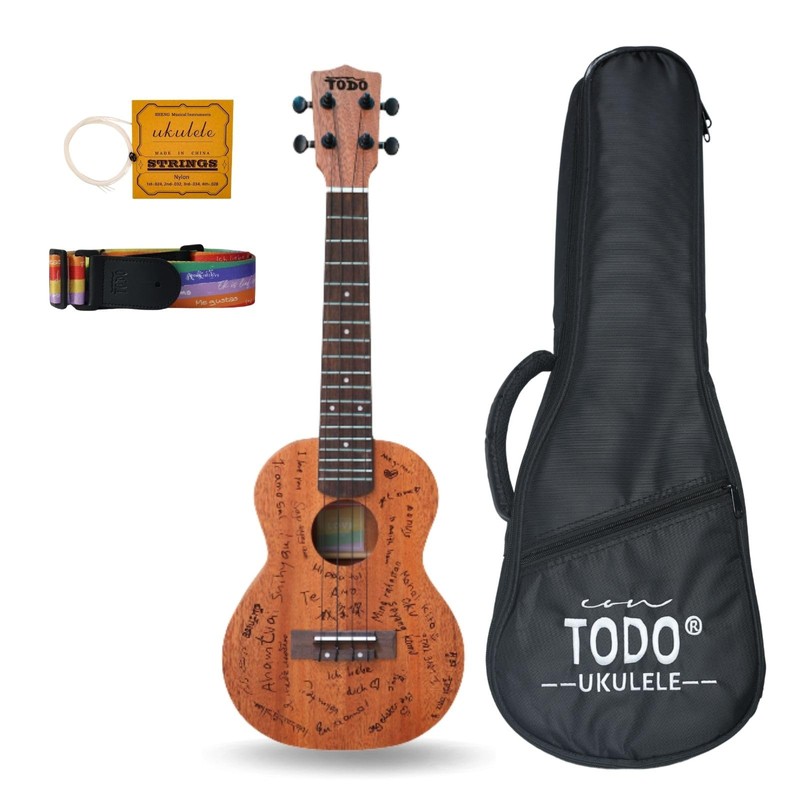 TODO Concert Ukulele Solid Mahogany Top 23 Inch : The LOVE Ukulele for Adults & Beginners with Carbon Strings, Bag, Strap