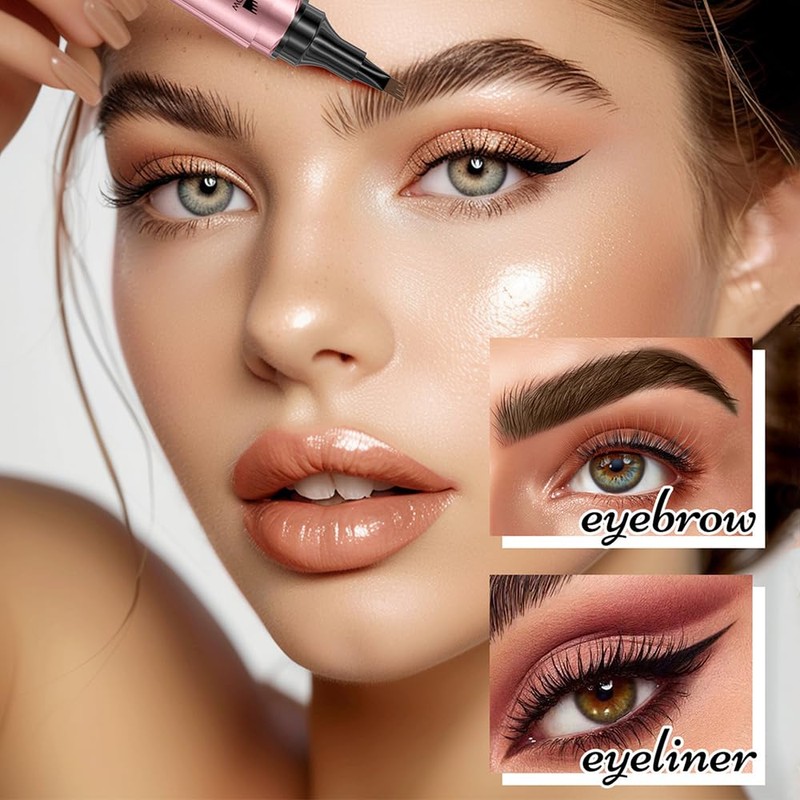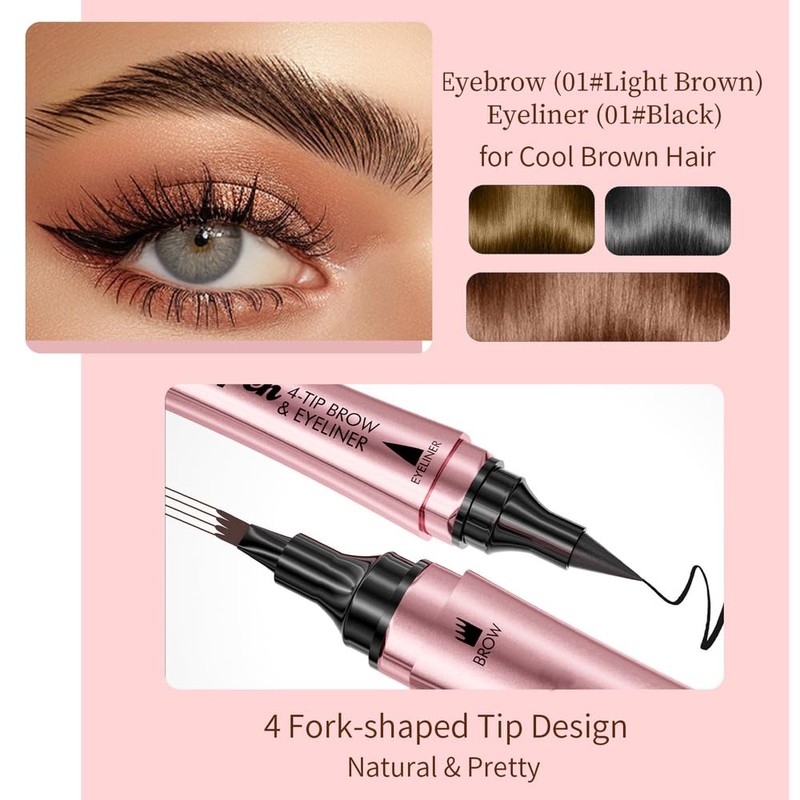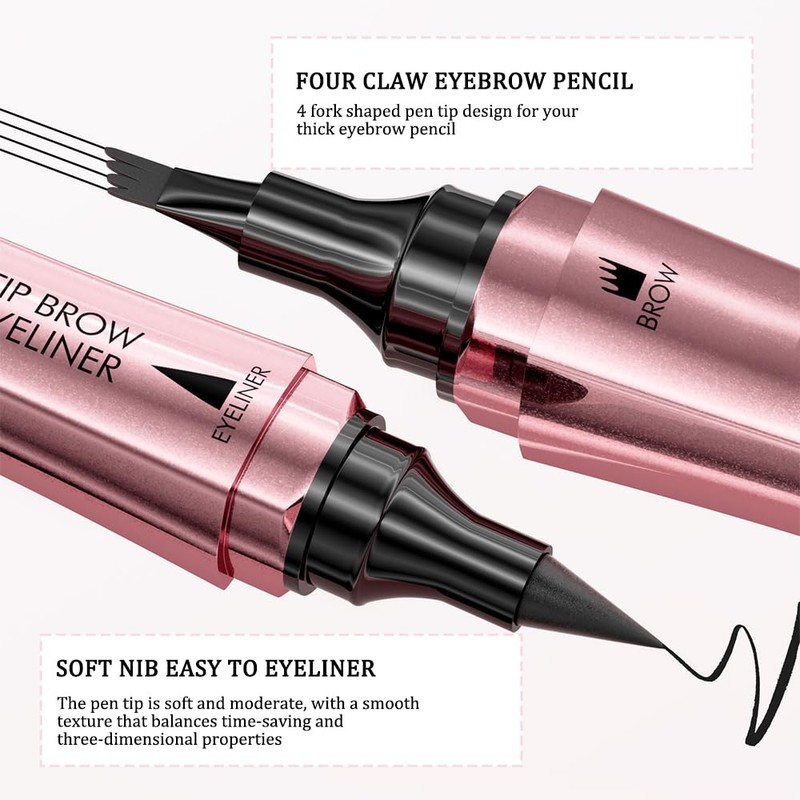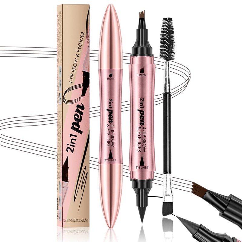 - DOUBLE HEAD DESIGN INCLUDES BROW BRUSH Our eyebrow pencil features a double head design that combines a liquid eyebrow pencil with an eyeliner, allowing versatile makeup looks in one convenient tool. With the built-in dual head eyebrow brush, you can blend and care for your eyebrows effortlessly.