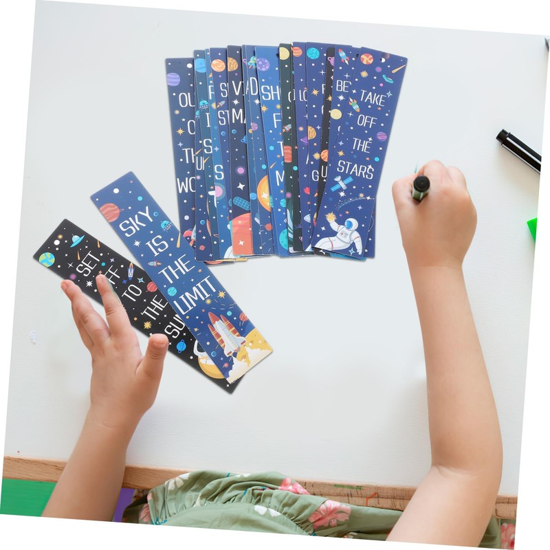 Tofficu 20pcs Space Themed Bookmarks for Kids Fun Bookmarks Cool Decorations for Boys Space Party Accessories