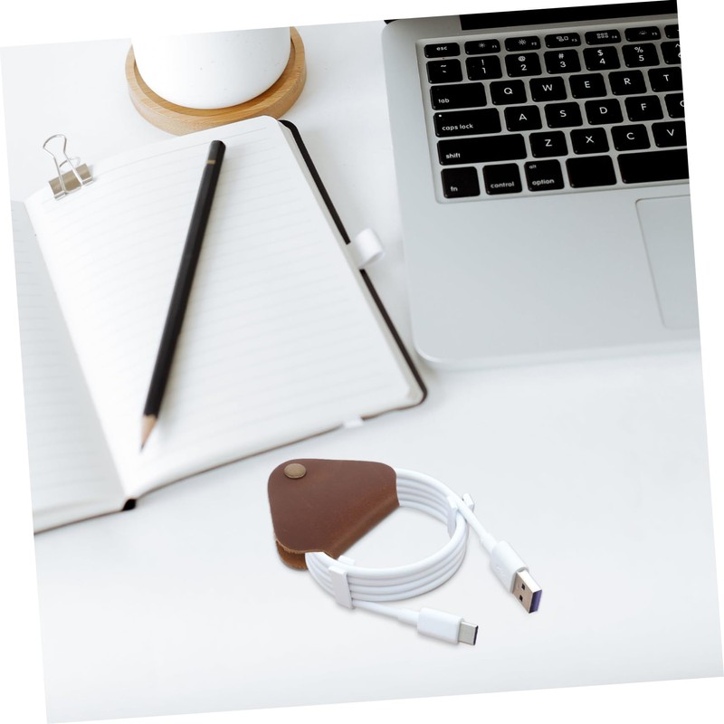 Featuring a classic design, this leather cord holder is both functional and stylish. It is crafted from leather, ensuring longevity and a sophisticated look. The snap button mechanism makes it easy to wrap and secure your cables, making it a practical for organizing your electronic accessories.