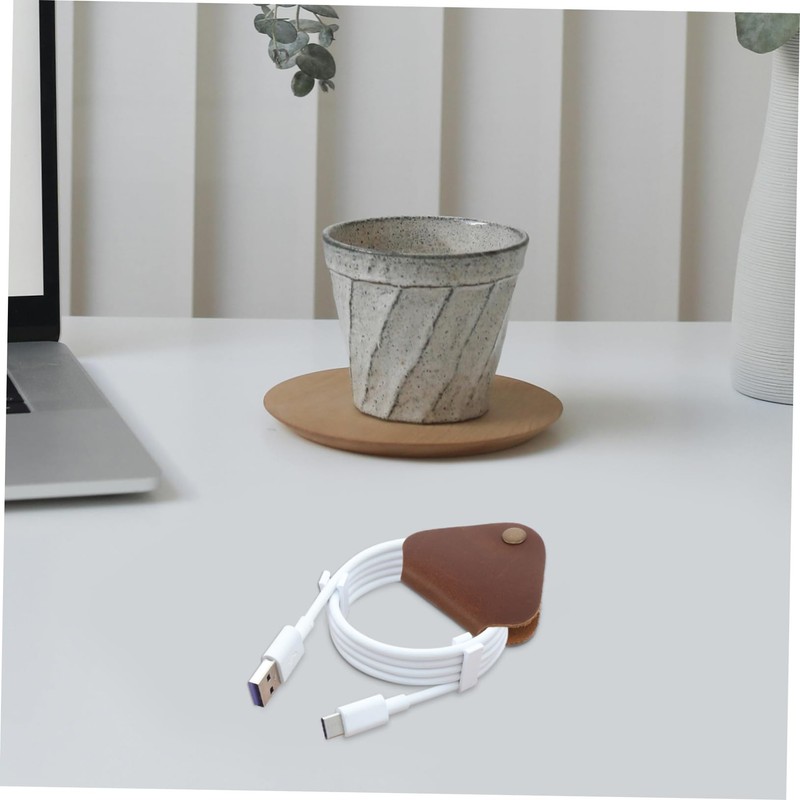 Tofficu Elegant Leather Cable Straps Organize Earbud Headphones Cord Cord Winder for Electronics