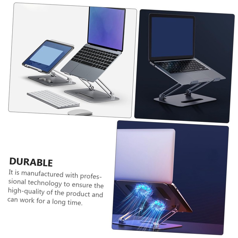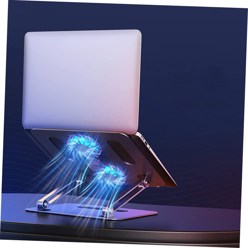 - Laptop cooler with fan:large diameter cooling fan, dual turbine drive, large wind volume, smoother wind supply and faster cooling,Alloy Laptop Stand