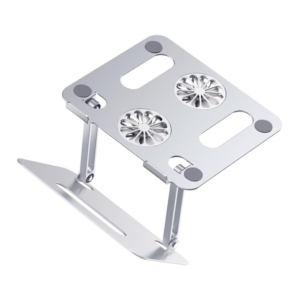 Tofficu Height Adjustable Notebook Cooler with Dual Fans Ventilated Laptop Cooling Rack for Gaming Aluminum Alloy Design Compatible with Laptops Up to Silver