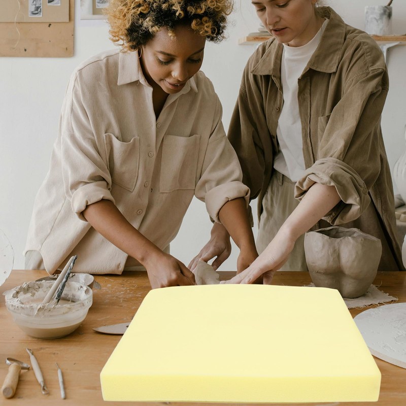 The pottery sponge table mat is designed to enhance your pottery experience.Made from high-density sponge, it efficiently absorbs water, making it easy to clean and use.Measuring 17.71 x 17.71 x 1.96 inches, this yellow sponge mat provides a comfortable and stable working surface for your pottery projects.Ideal for use in schools, pottery studios, and home workshops, it helps improve your work efficiency by offering a reliable platform.The high-grade sponge material ensures durability and ease of maintenance, making it a practical addition to any pottery workspace.Whether you're a professional potter or a hobbyist, this sponge table mat is perfect for creating a clean and organized work area.