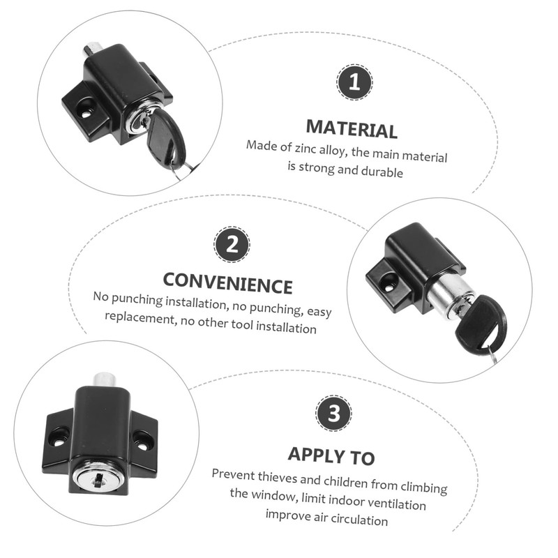 - Slider door lock--open the window when the weather is hot in summer, which can air circulation, you can use the window lock to fix the window, it can prevent from falling and prevent ,sliding door lock latch