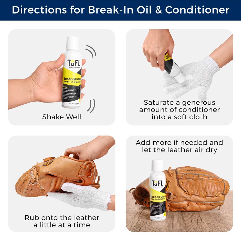 TOFL Baseball Glove BreakIn Kit (Oil for Gloves, Glove Cleaner and Conditioner)