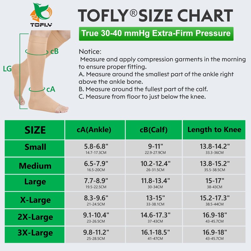- SUITABLE CROWD and DAILY USE: TOFLY 30-40mmhg compression socks are ideal for patients with deep vein thrombosis, chronic leg fatigue, thrombotic PTS and other medical condition pain. A great gift for friends, parents, nurses, doctors, seniors, and people with thick legs. Multiple sizes of graduated compression socks ensure that our garments are comfortable and provide accurate pressure gradient distribution for all day comfort wear.