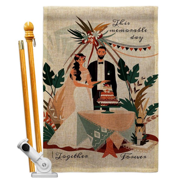 Together Forever Burlap House Flag - Set Celebration Anniversary Happy Couple Married Wedding Occasion Party Valentines - Decoration Banner Small Garden Yard Gift Double-Sided Made in USA 28 X 40