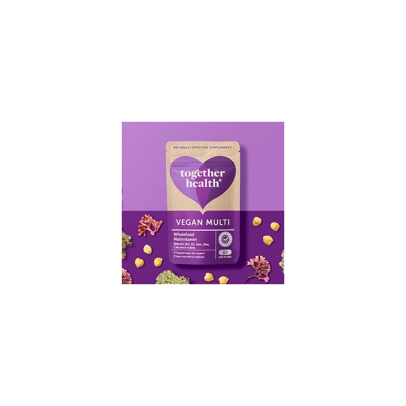 Vegan or vegetarian? Say hello to Together Health’s Vegan Multivitamin, topping you up with the vitamins and minerals that can be tricky to find in plant based diets. This Vegan Multi is made from foods, ocean sourced and plant-based ingredients. Our bodies absorb vitamins and minerals far better as part of a complete complex, while still staying gentle to the stomach.