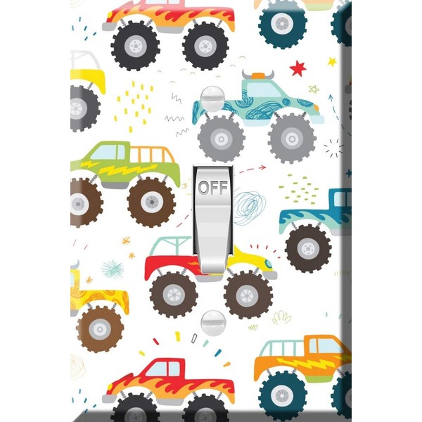 Toggle Wallplate, Single Light Switch Cover Plate - Monster Truck Pattern