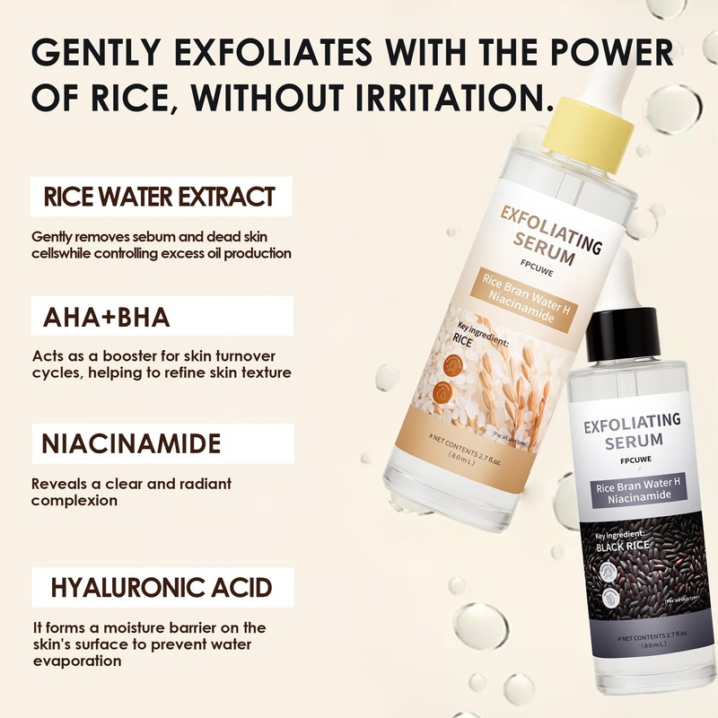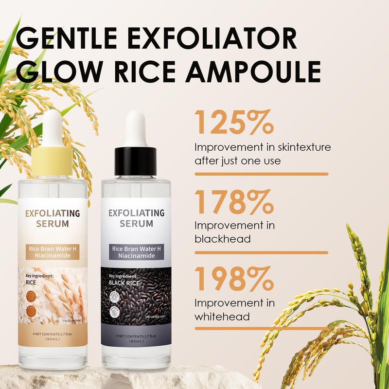 - Comprehensive Exfoliation SystemRice ampoule exfoliant Contains AHA, BHA and PHA ingredients to promote skin renewal cycle, refine skin texture, enhance radiance without irritating the skin. The multi-level exfoliation process can remove excess dead skin cells to reveal a smoother skin base.
