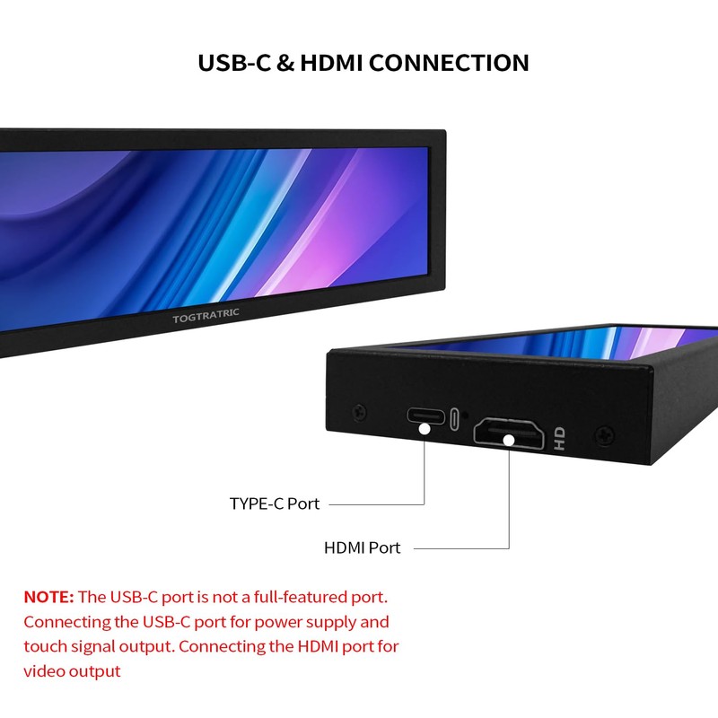 - Mini Touchscreen IPS Display: 8.8 Inch stretched bar monitor with 10 points multi-touch functionality for responsive and smooth touch experience. IPS panel with 1920x480 resolution ensures wide viewing angles and accurate color reproduction, making this touchscreen monitor ideal for any environment.