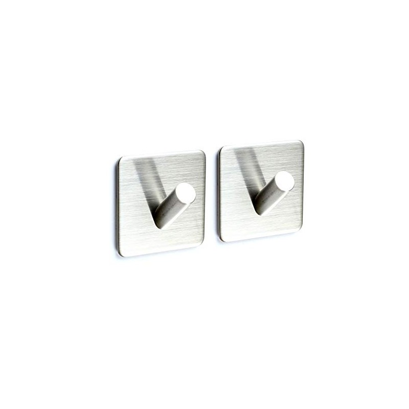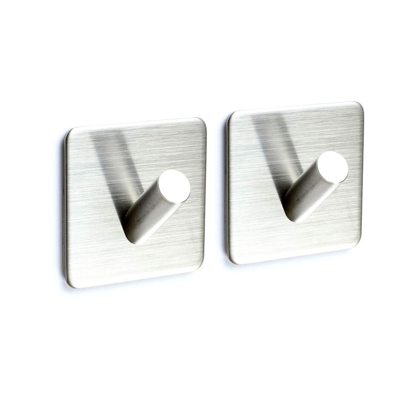 Togu Self Adhesive Hooks Heavy Duty Wall Hooks/Towel Hooks/Coat&Robe Hooks Nail-Free Waterproof Stick On Tiles Bathroom Kitchen Door,Brushed Stainless Steel Finish,2 Pack