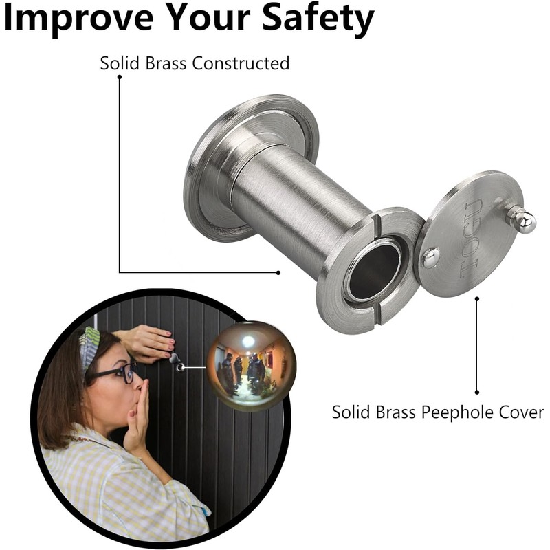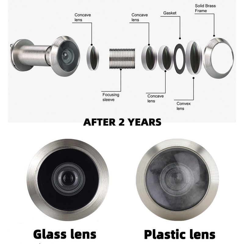 • Well Built Structure- The structure of the Brushed Nickel door eye hole is made of high-quality solid brass and stainless steel, causing higher ability of rustproof and durability compared to those made of semimetal.