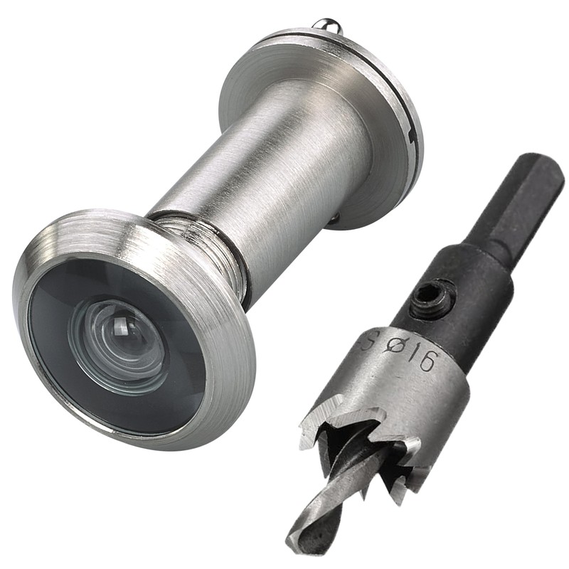 • Hassle-Free Installation- The peephole for front door comes with matched drill bit ( 16 mm),which is compatible with door thickness from 1-3/8" to 2-1/6"(35mm-55mm).Even if you aren`t good at handy work,you can easily complete the installation in 30 mins.