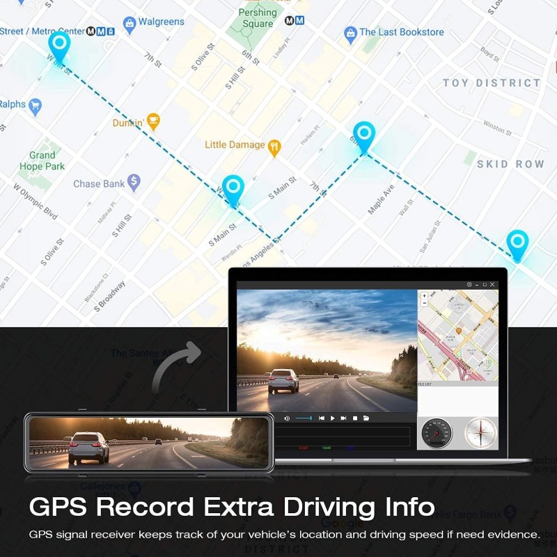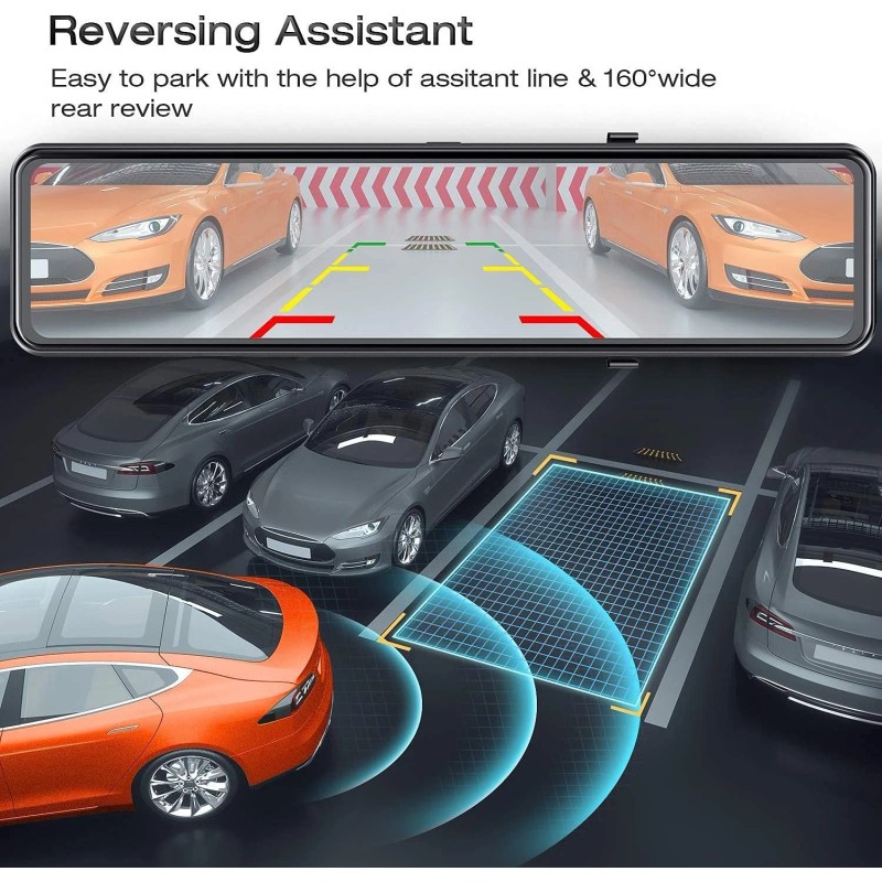 【4K Ultra HD Experience】Features 3840 x 2160@30fps 4K ultra high resolution, TOGUARD CE80B Mirror Dash Cam captures the car's license plates and road signs in a super clear definition from distance. The 12" rectangle-shaped display with adjustable 330 ° wide-angle dual lens offers you a bigger and wider visual experience than the traditional rearview mirror, reduce the blind area to realize safer driving.