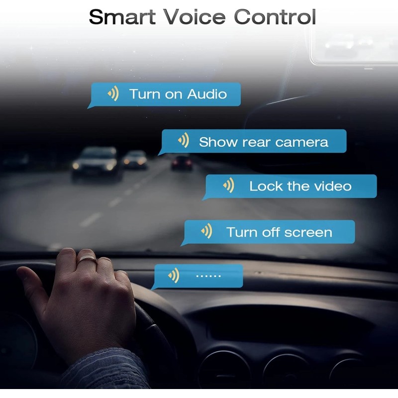 【Built-in Voice Commands】You can operate this smart mirror dash camera instead of touching the screen to lock the video, switch the front/rear camera display, or turn on/off the screen, etc, offering you a safer and more comfortable driving experience.