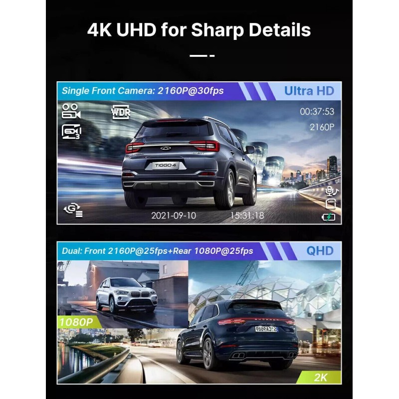 4K Ultra HD Experience: TOGUARD DC16 dashcam simultaneously records front at 4K(3840 x 2160) and rear at 1080P(1920 x 1080), which provides crystal clear video quality to read license plates during day and night. 【Very Important Tips】: because it's a High Resolution 4K car camera, please ensure to use a brand U3 SD card and also format it before first use.